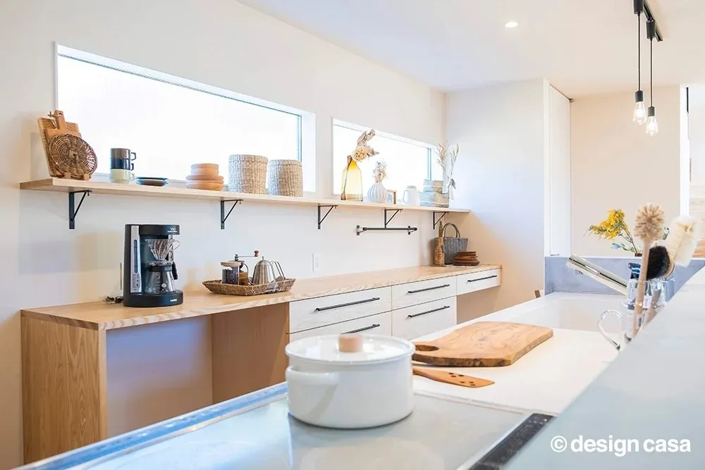 住宅と店舗を一体で設計することで、土地や光熱費の効率化にもつながり、デザイン面でも統一感ある心地よい空間に。