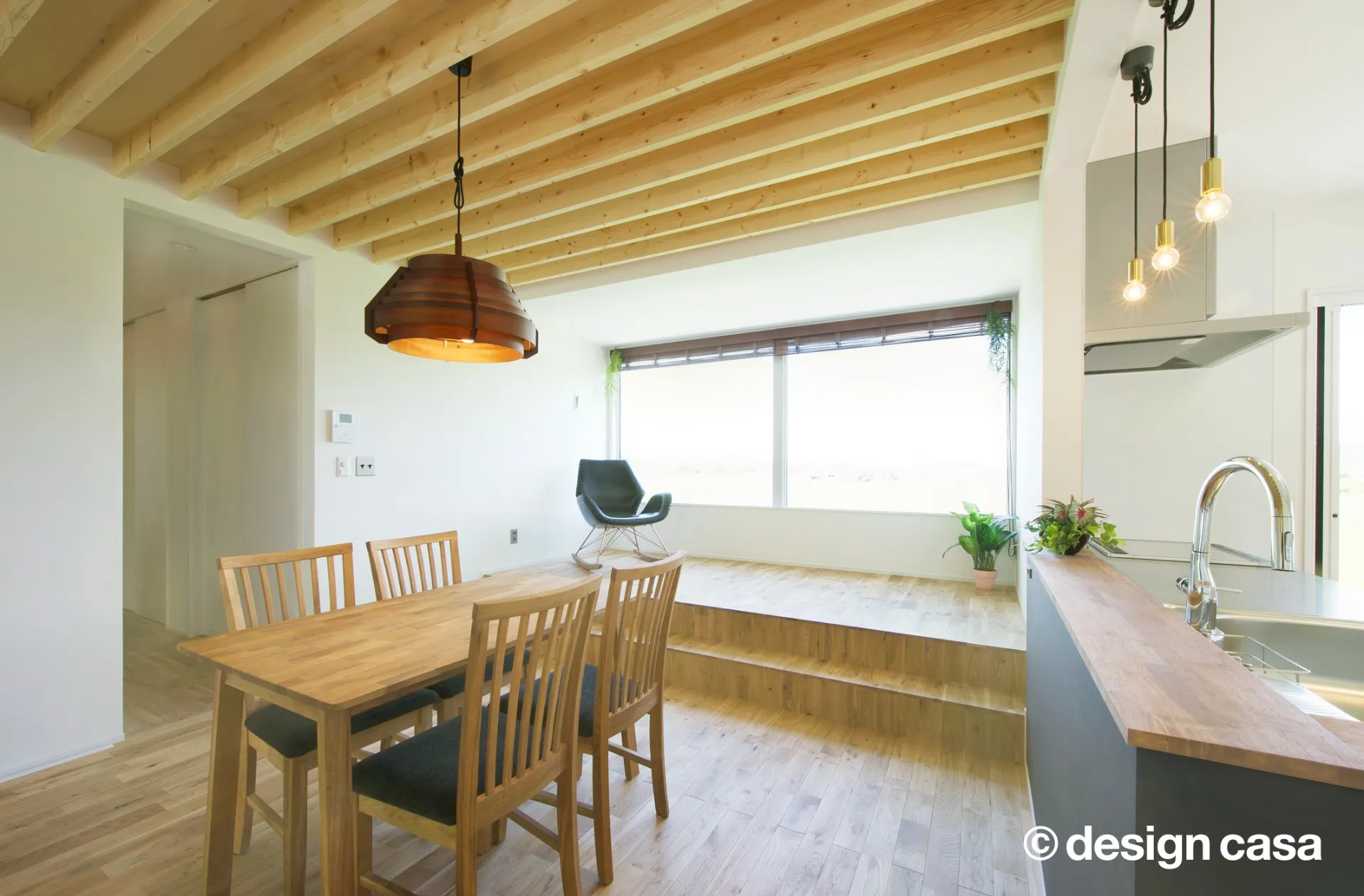 視線の抜けや天井高さ、窓配置を工夫し、 実際の面積以上に広がりを感じられるLDKを実現。 平屋ならではの一体感を体感いただけます。